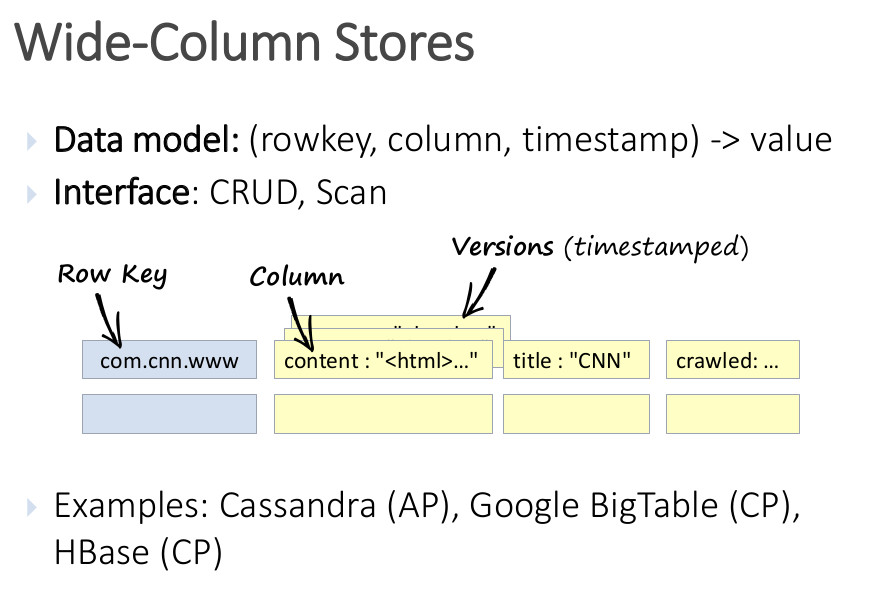 - Aseguran una escritura rápida, dando prioridad a la disponibilidad de la escritura sobre la consistencia de los datos. Esto permite asegurar la rapidez incluso en casos de fallos en el hardware o en la red, que en otras bases de datos supondría retrasos en la modificación de los datos y repercutiría negativamente en su coherencia.