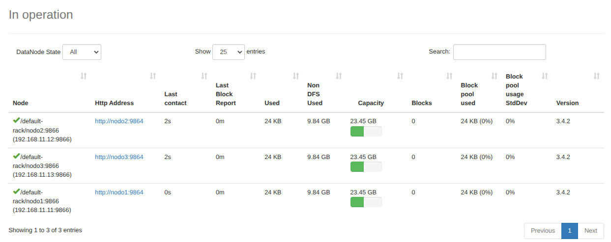 - Por último, entramos a cada uno de los nodos y cambiamos los permisos de