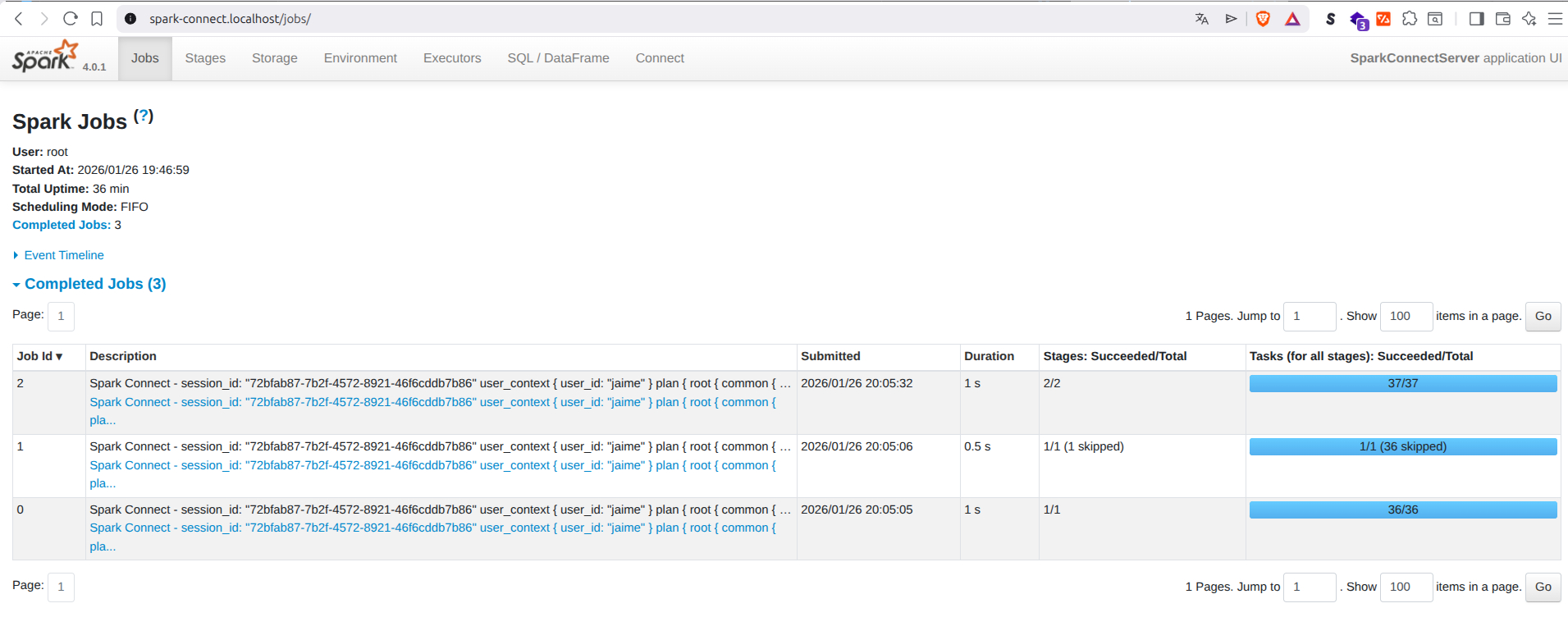 Mientras ejecutas la celda, puedes ver cómo el clúster trabaja en tiempo real. Abre en tu navegador: http://spark-connect.localhost